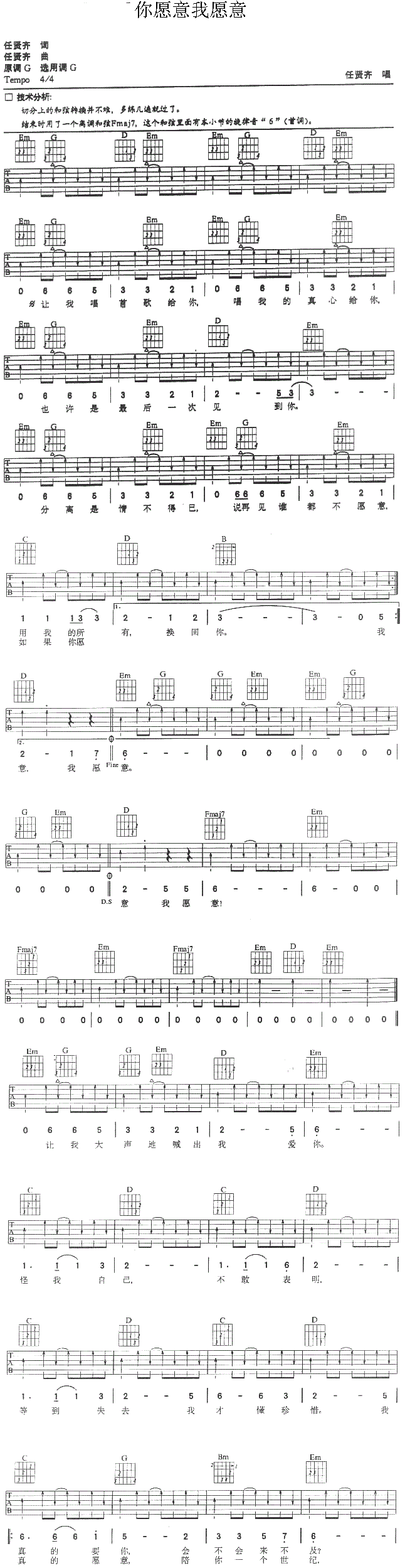 当前位置:琴谱网>吉他弹唱>你愿意我愿意 任贤齐 图片
