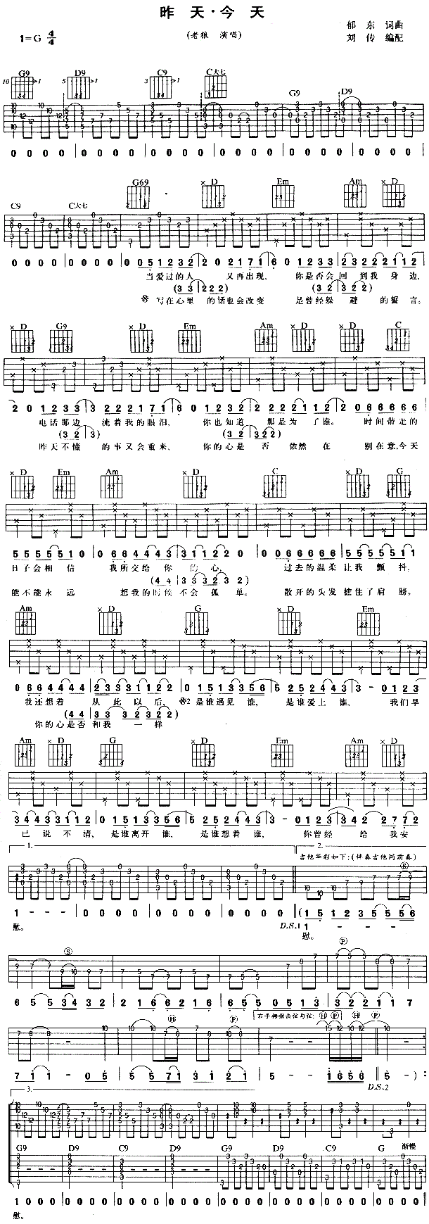 昨天今天 老狼 图片吉他谱 - 昨天今天 - 吉他弹唱谱