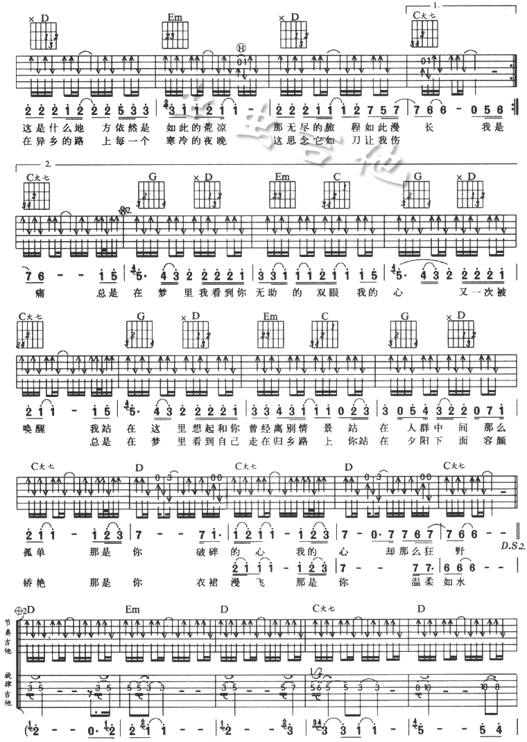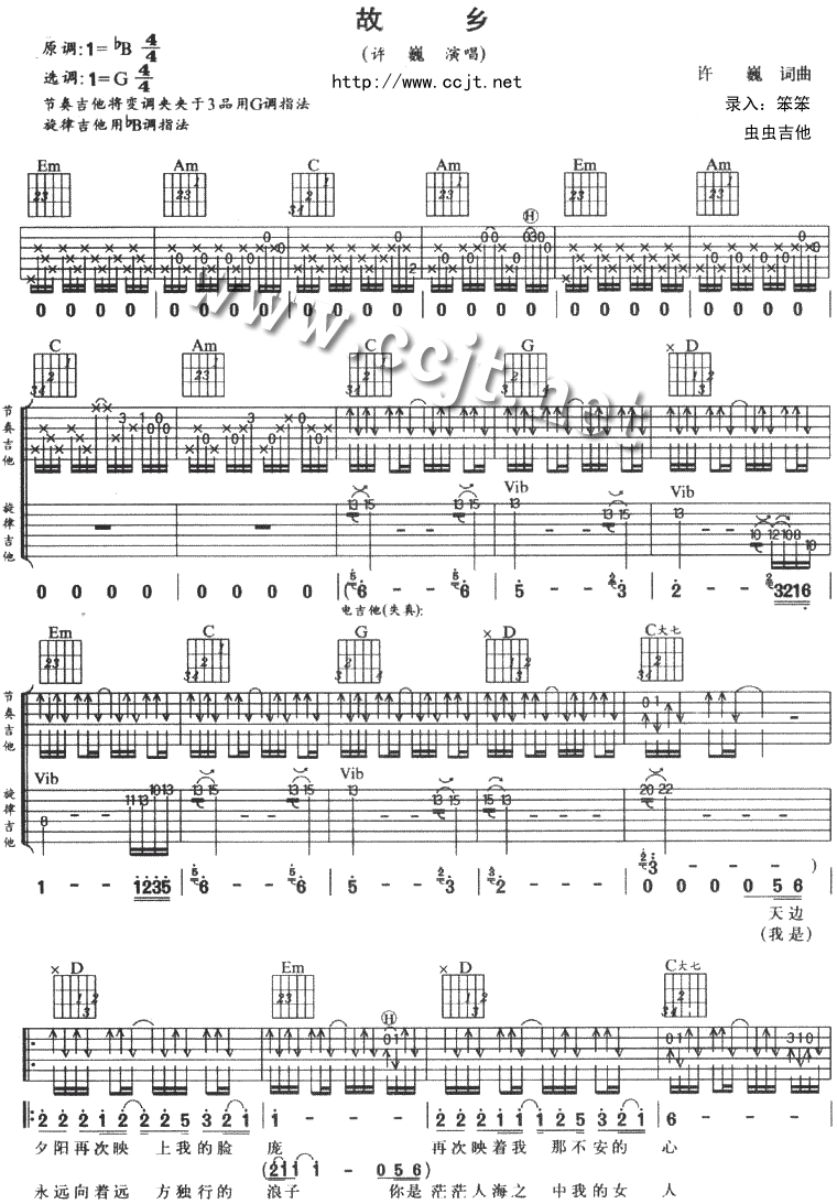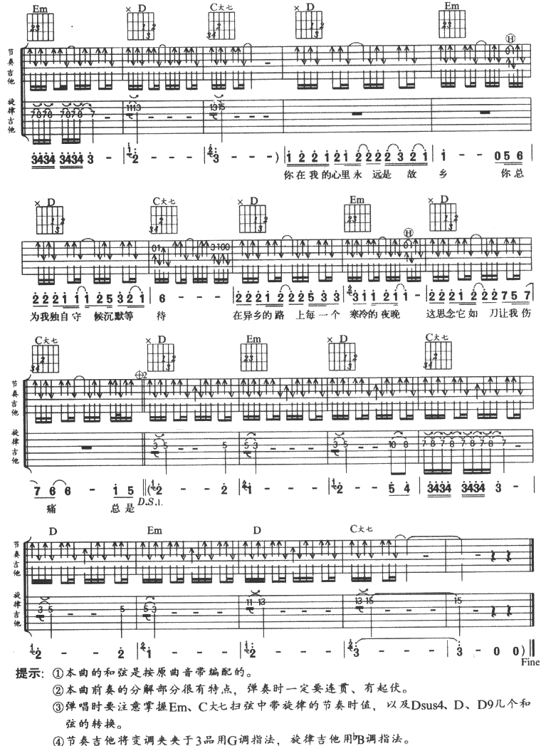 故乡吉他谱 - 吉他弹唱谱