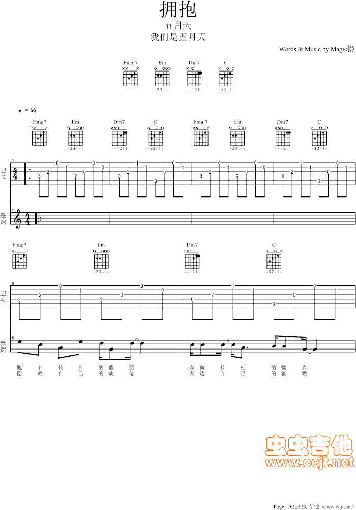 当前位置:琴谱网>吉他弹唱>拥抱