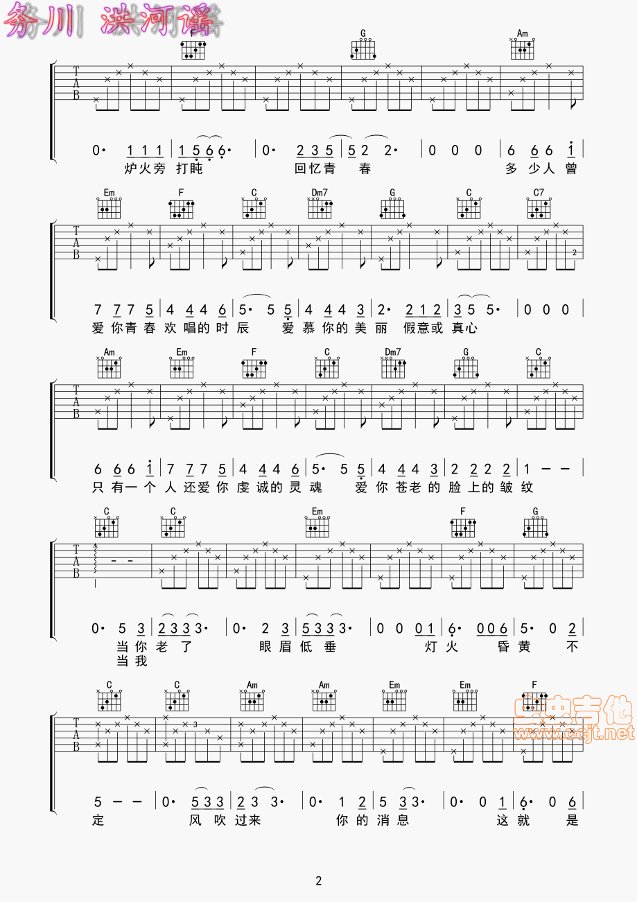 当你老了 赵照 带前奏间奏吉他谱 - 当你老了 - 吉他弹唱谱