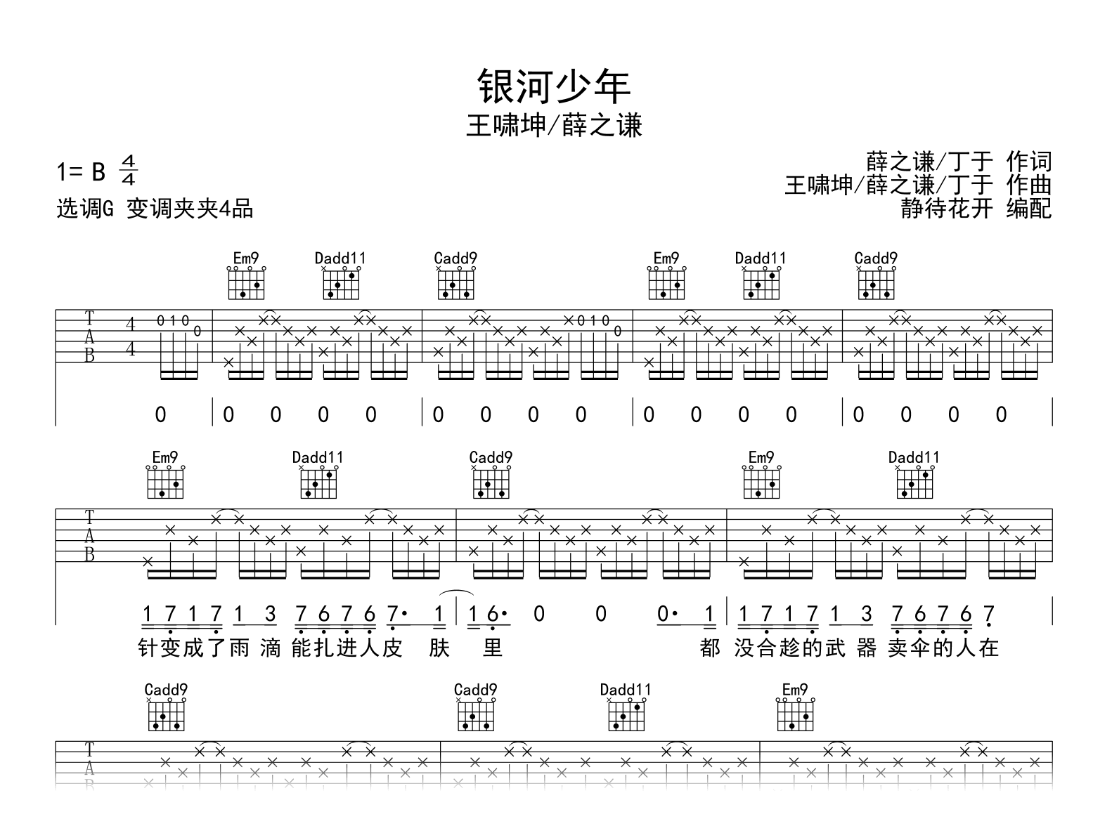银河少年吉他谱 - 薛之谦/王啸坤 - G调吉他弹唱谱