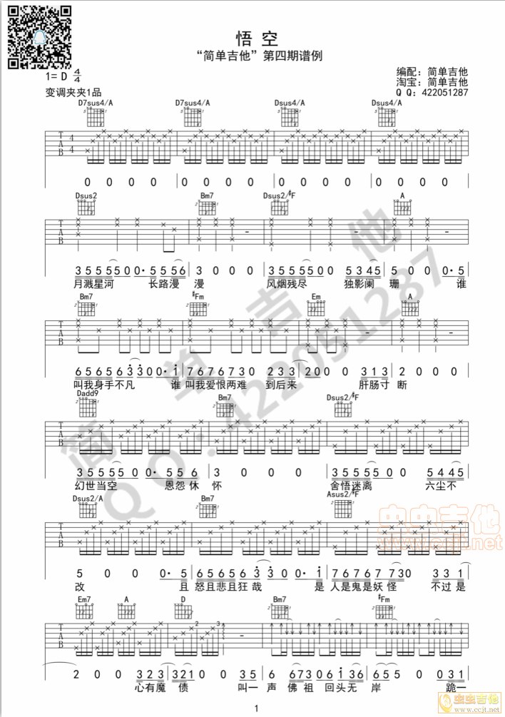 悟空吉他谱 - 吉他弹唱谱