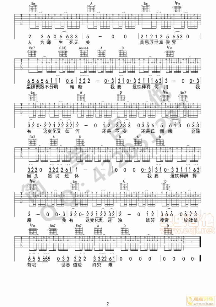 曲谱介绍: 《悟空》吉他弹唱谱,共有2张高清图谱,免翻页排版设计。
