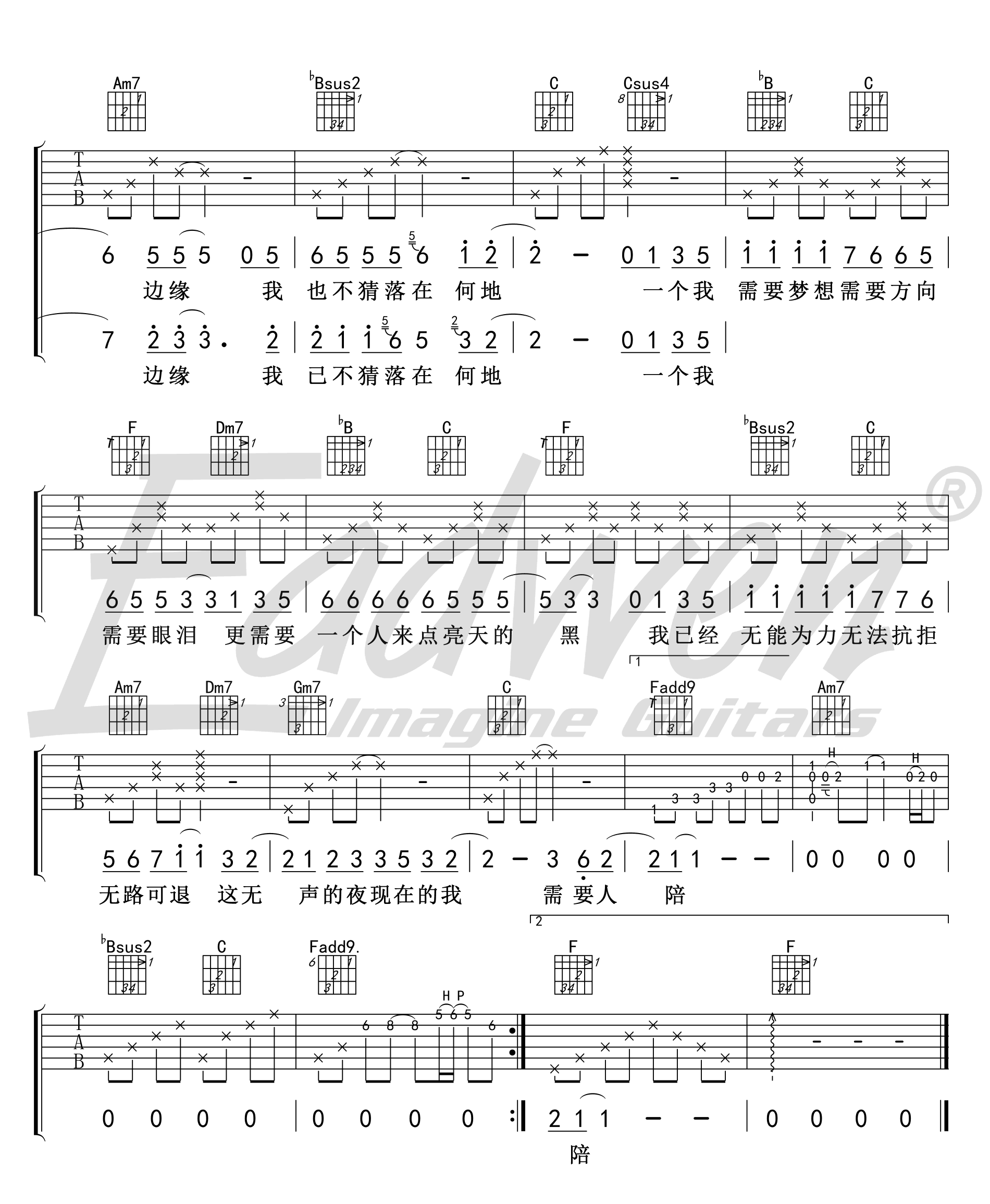需要人陪 王力宏 图片吉他谱 - 需要人陪 - 吉他弹唱谱