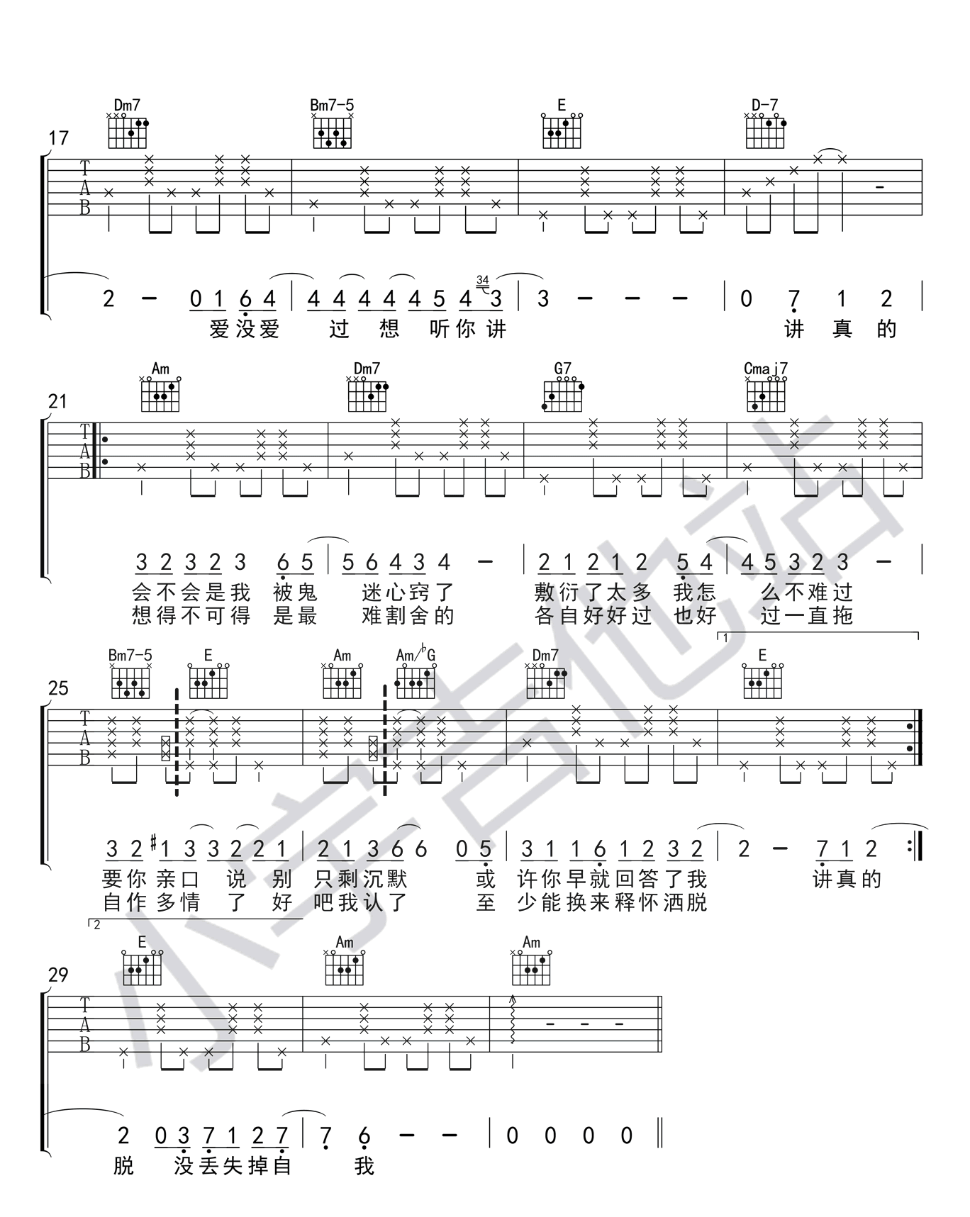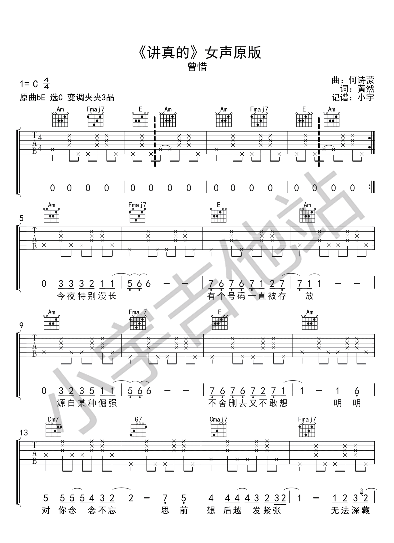 讲真的 曾惜C调女声原版+G调抖音版本吉他谱 - 讲真的 - C调吉他弹唱谱 - 原版