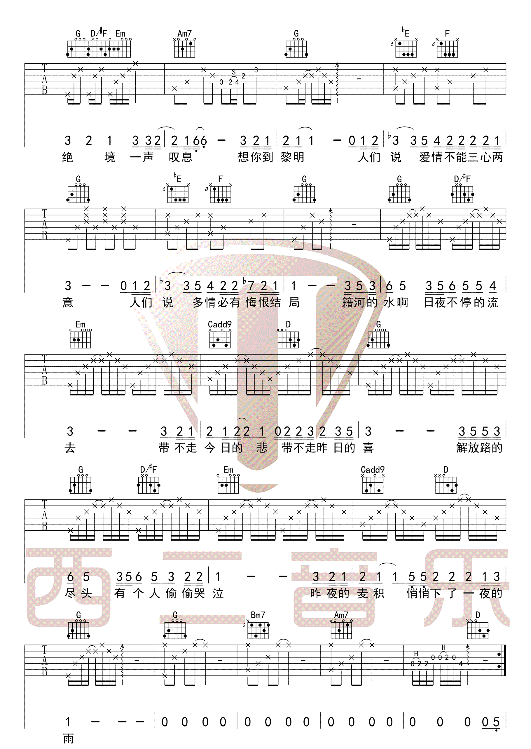 烟雨天水 白亮 G调和弦原版 图片吉他谱 - 烟雨天水 - G调吉他弹唱谱 - 原版