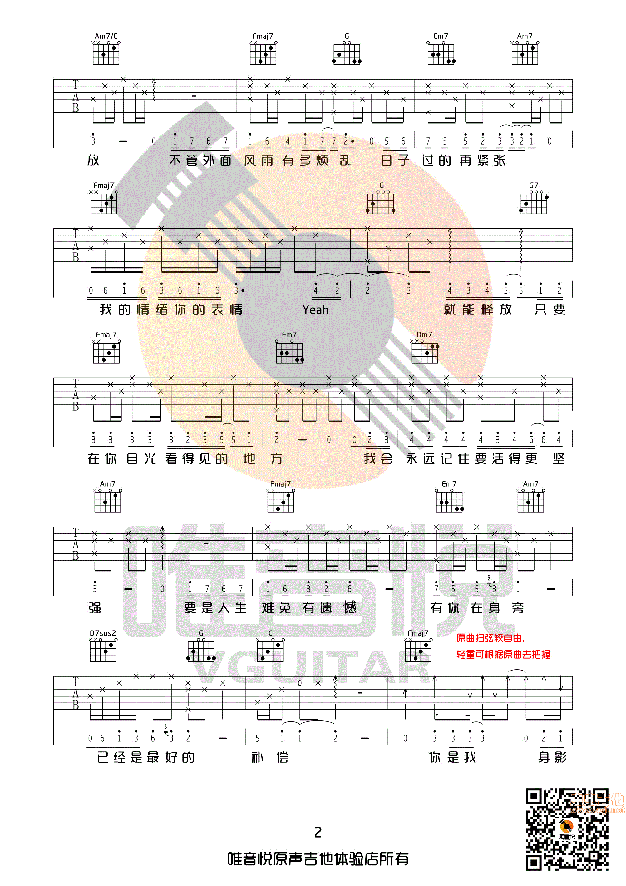 当前位置:琴谱网>吉他弹唱>只要有你的地方 林俊杰 C调完整版