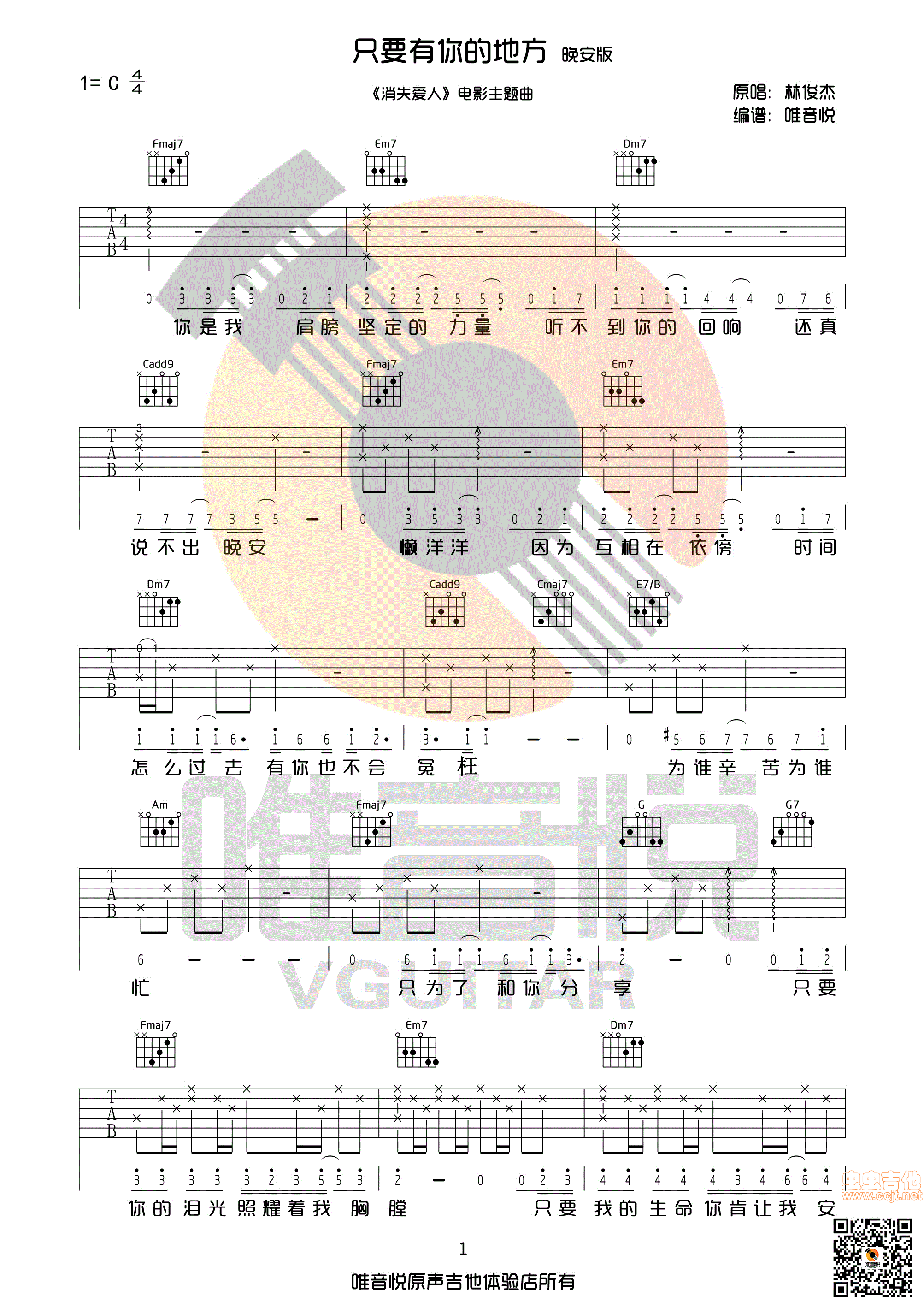 只要有你的地方 林俊杰 C调完整版吉他谱 - 只要有你的地方 - C调吉他弹唱谱
