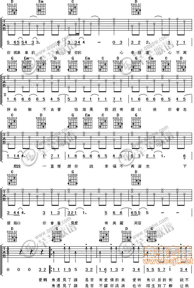 爱转角吉他谱 - 吉他弹唱谱