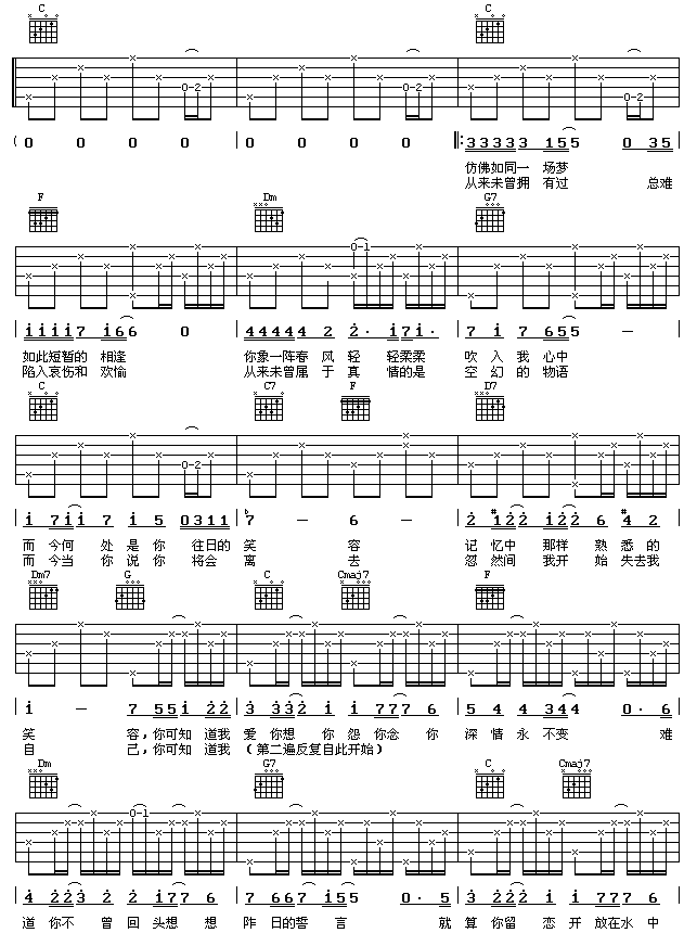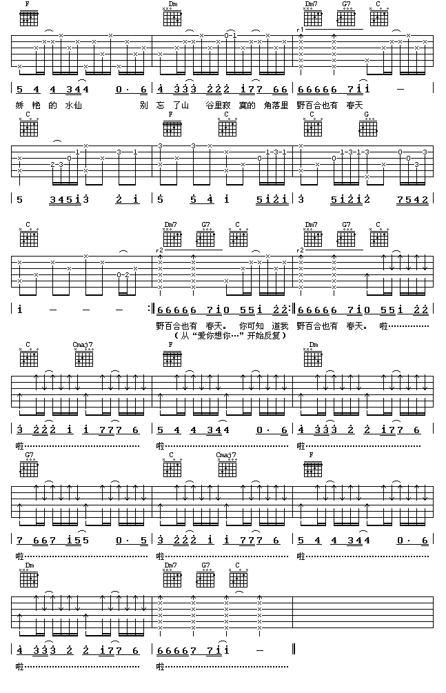当前位置:琴谱网>吉他弹唱>野百合也有春天