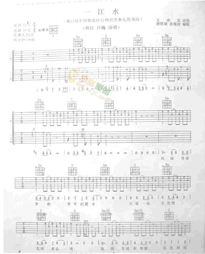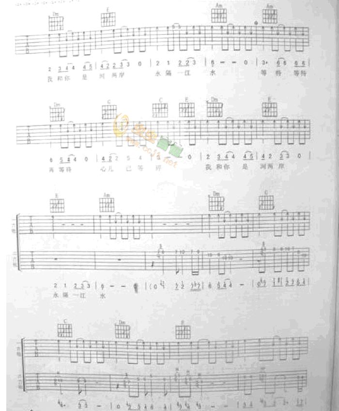 曲谱介绍: 《永隔一江水》吉他弹唱谱,共有4张高清图谱。