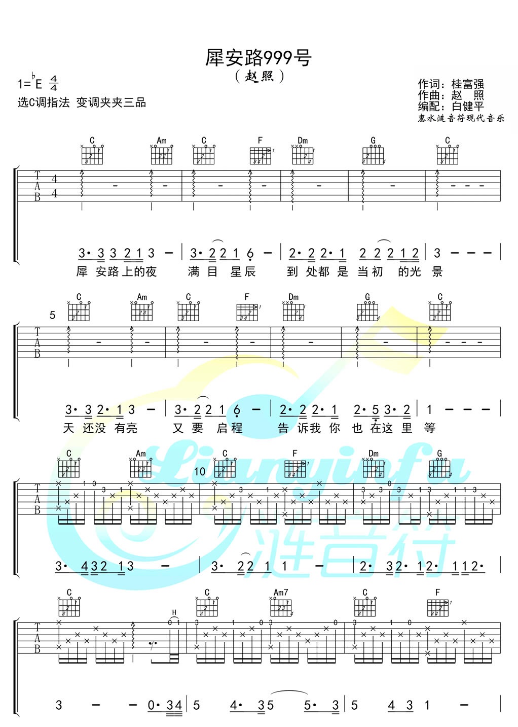 犀安路999号 赵照 C调指法六线吉他谱 - 犀安路999号 - C调吉他弹唱谱