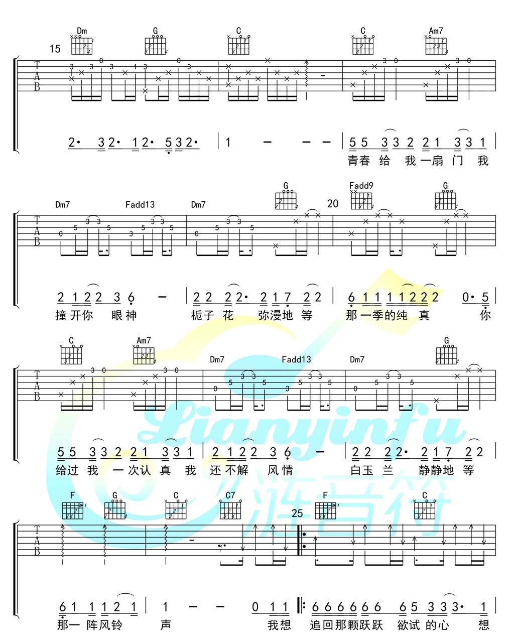 当前位置:琴谱网>吉他弹唱>犀安路999号 赵照 C调指法六线