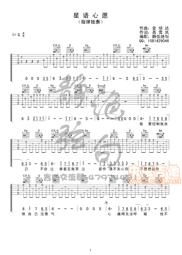 曲谱介绍: 《星语心愿》吉他独奏谱,共有2张高清图谱,免翻页排版设计。