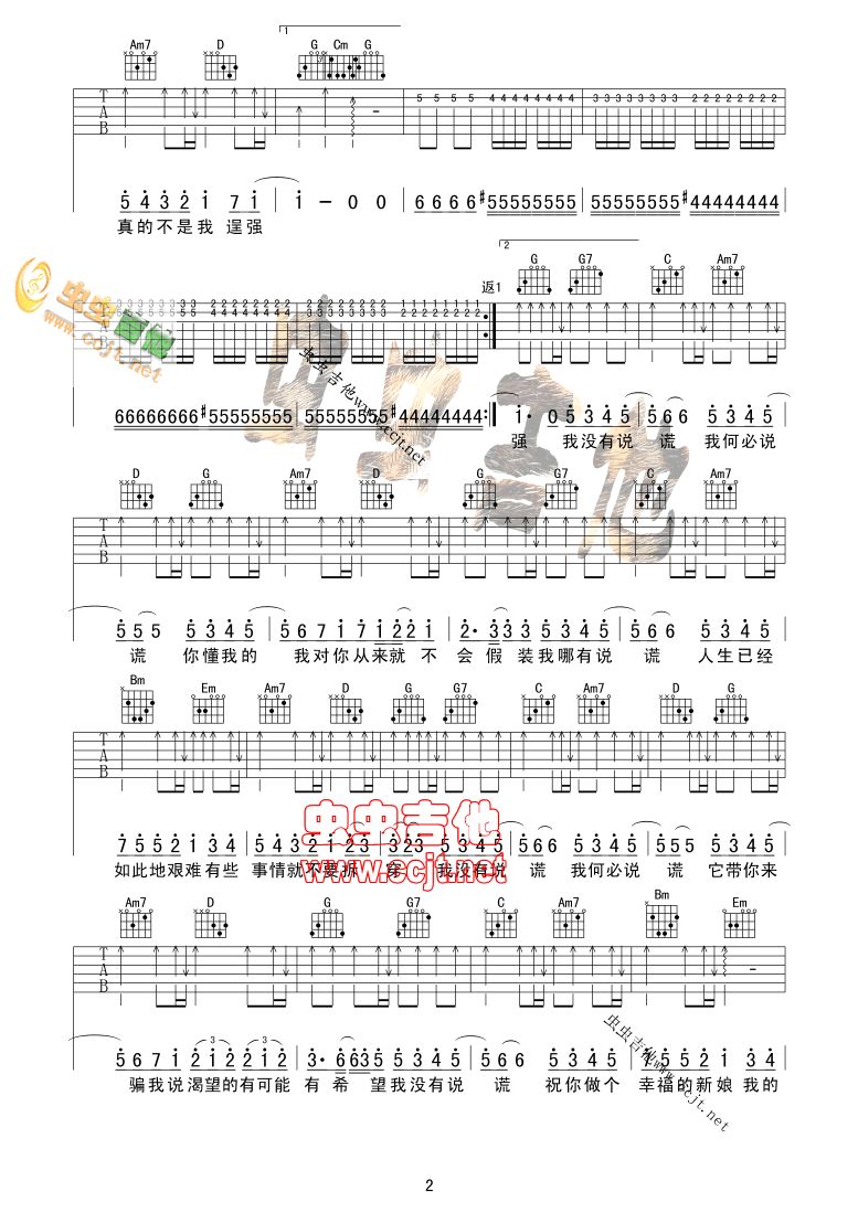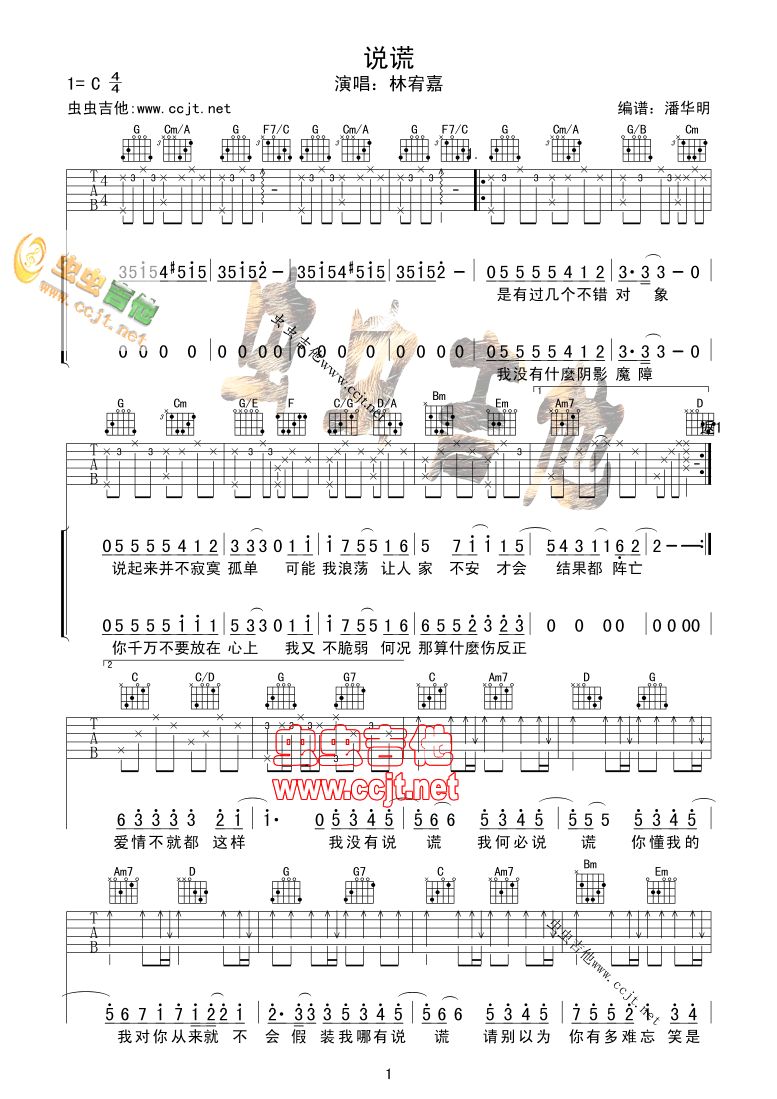 说谎吉他谱 - 吉他弹唱谱