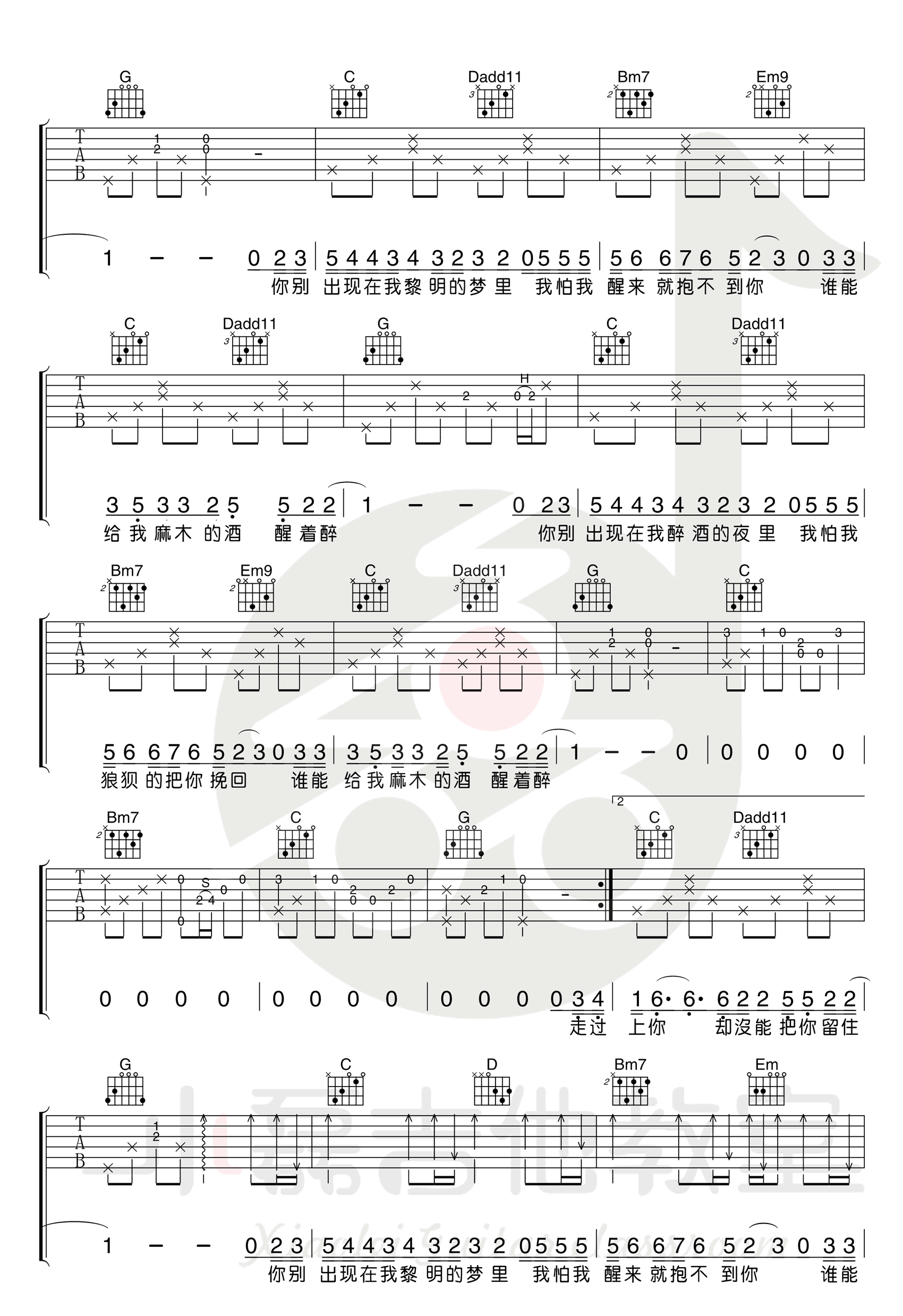当前位置:琴谱网>吉他弹唱>醒着醉 马良 G调版本完整版