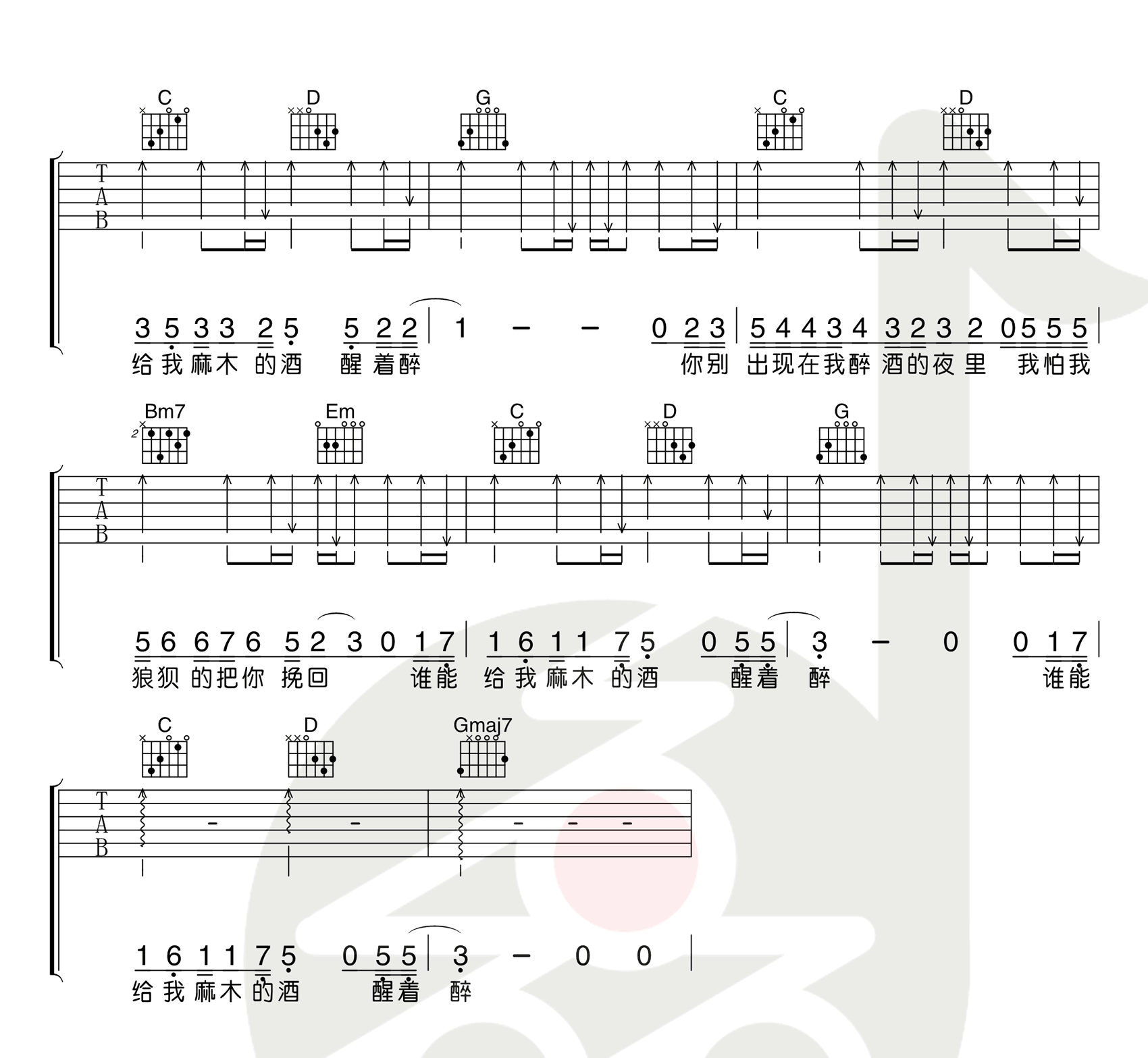 醒着醉 马良 G调版本完整版吉他谱 - 醒着醉 - G调吉他弹唱谱