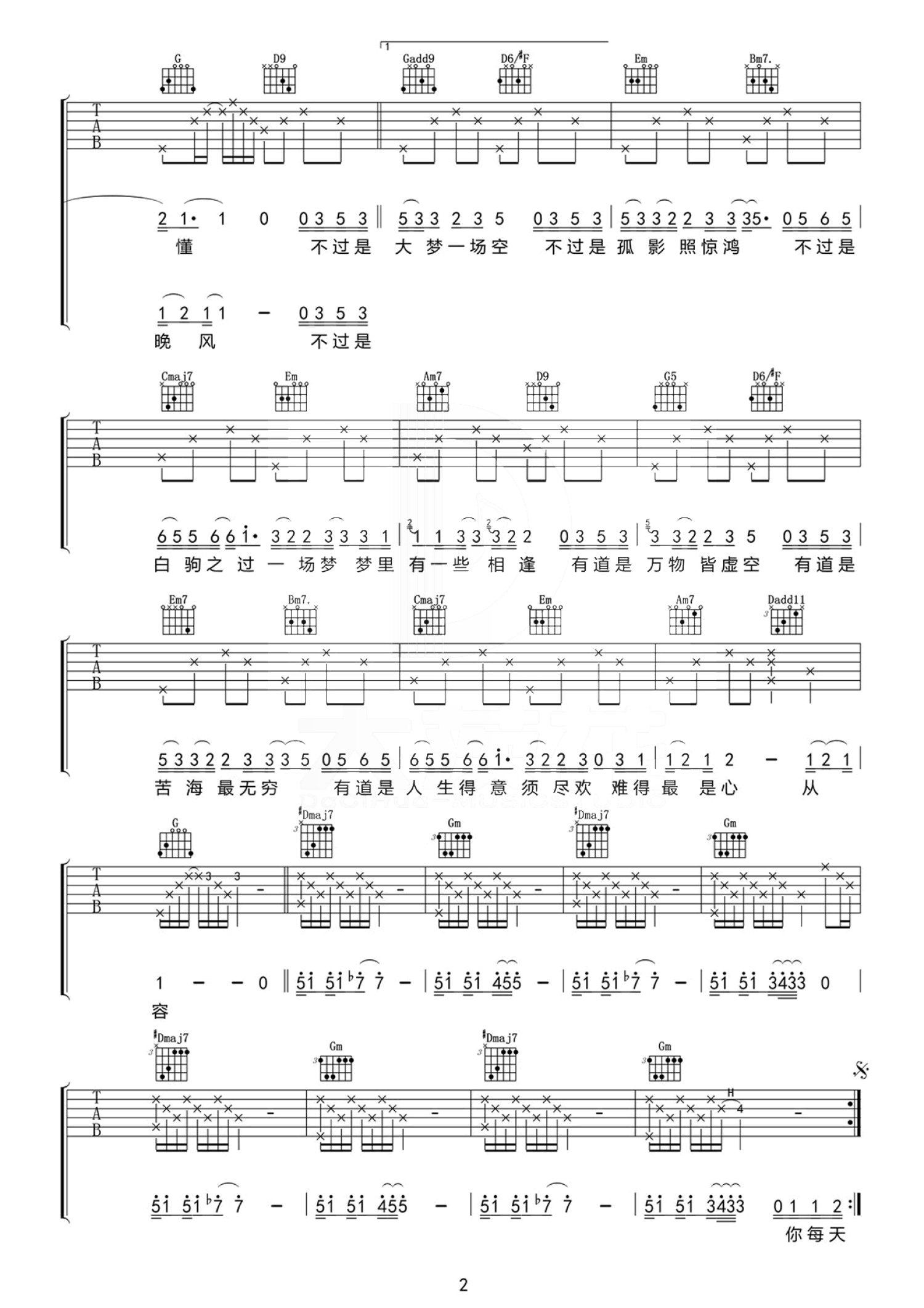 吉他弹唱G调来源:大茨花音乐工作室1966 浏览2020-02-03 08:42发布图谱共3页