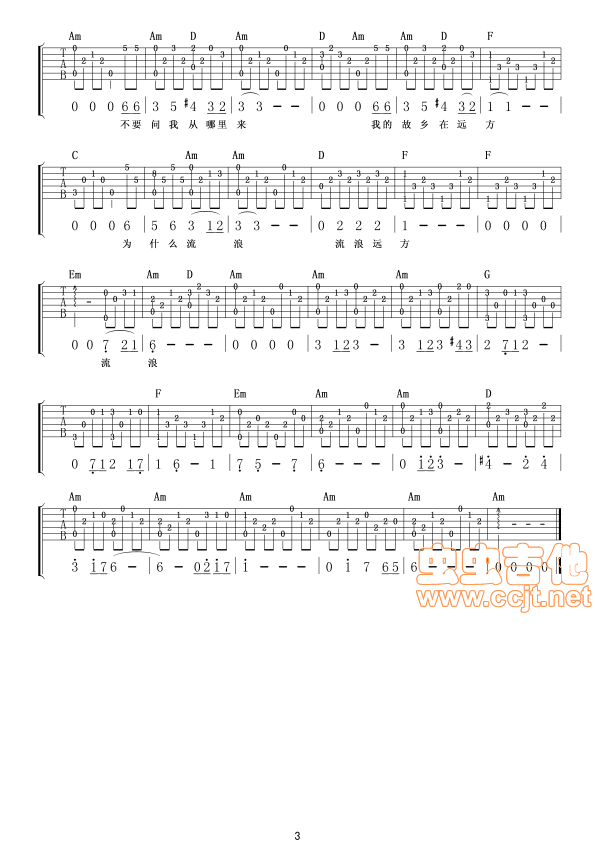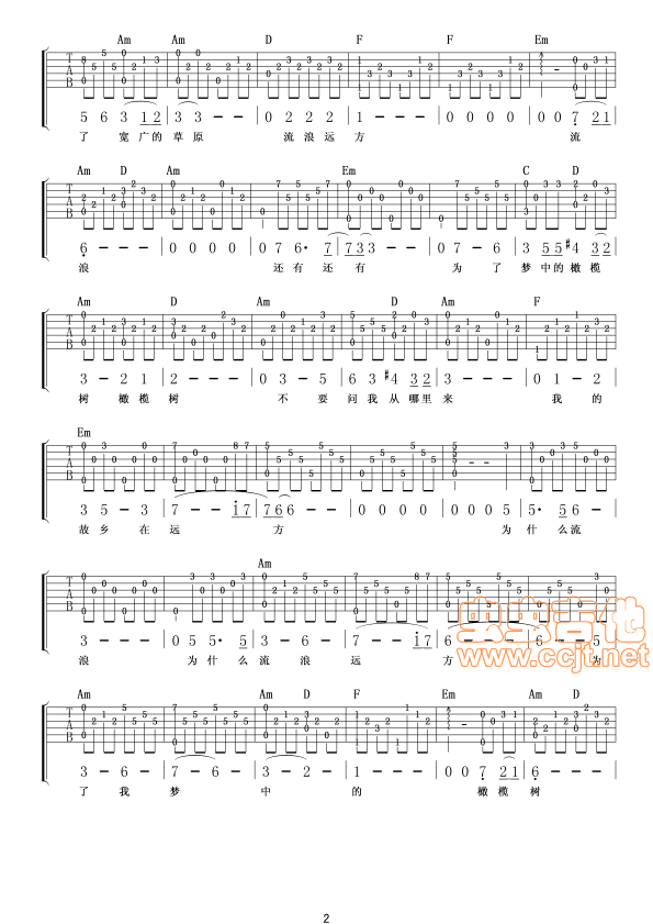橄榄树(曲)吉他谱 - 吉他独奏谱
