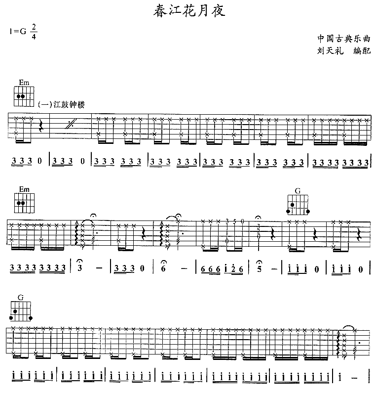 春江花月夜吉他谱 - 吉他弹唱谱