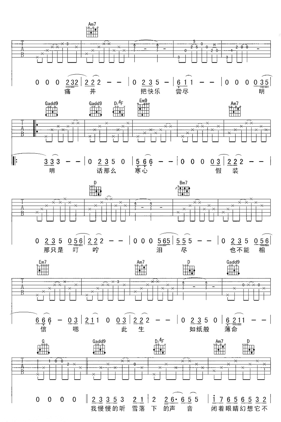 延禧攻略吉他谱 - 雪落下的声音 - 吉他弹唱谱