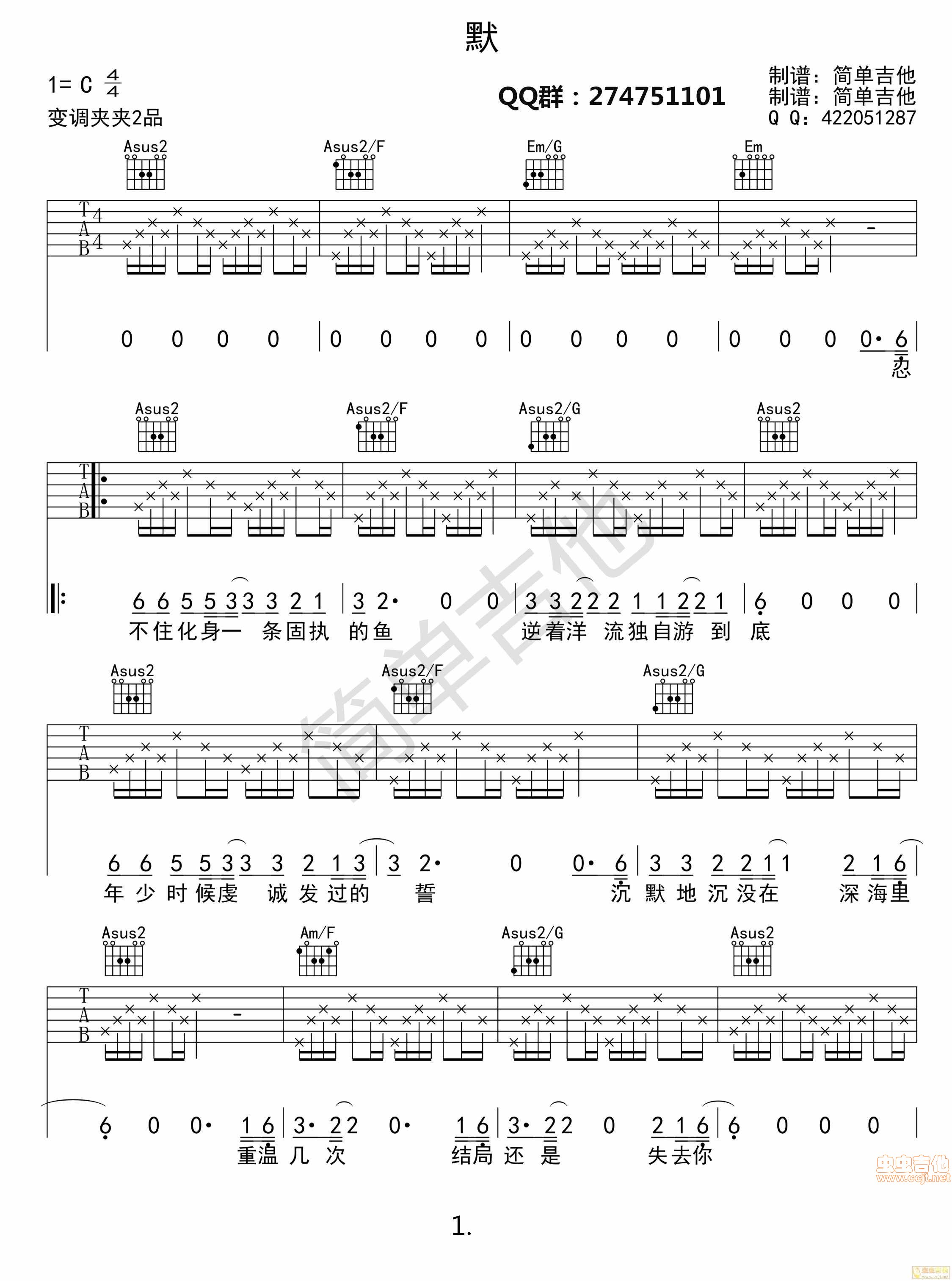 当前位置:琴谱网>吉他弹唱>默(中国好声音那英版高清