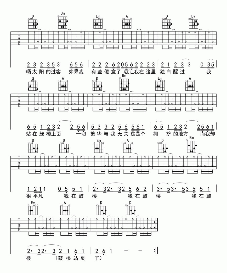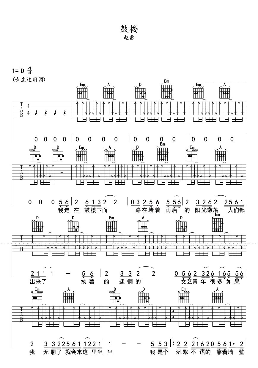 鼓楼 赵雷 鼓楼六线吉他谱 - 鼓楼 - 吉他弹唱谱