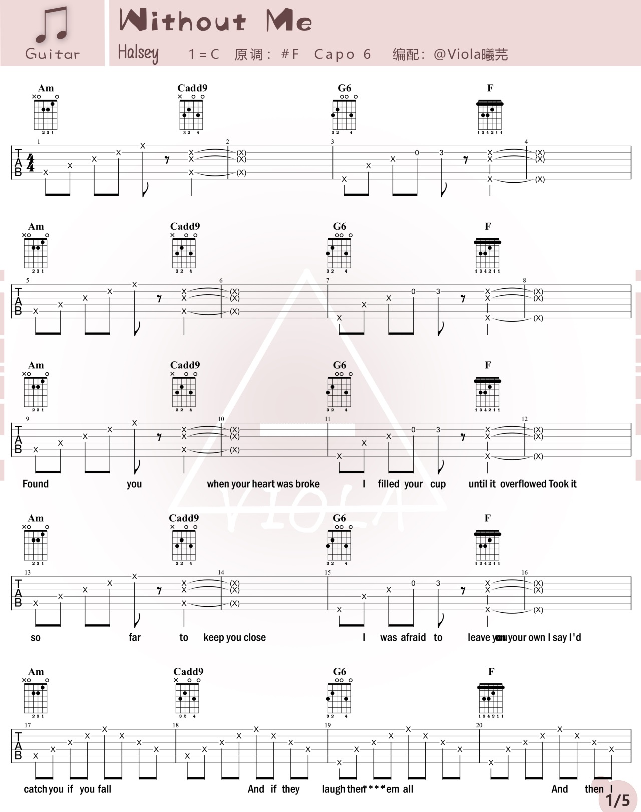 Without Me Halsey 图片吉他谱 - Without - 吉他弹唱谱