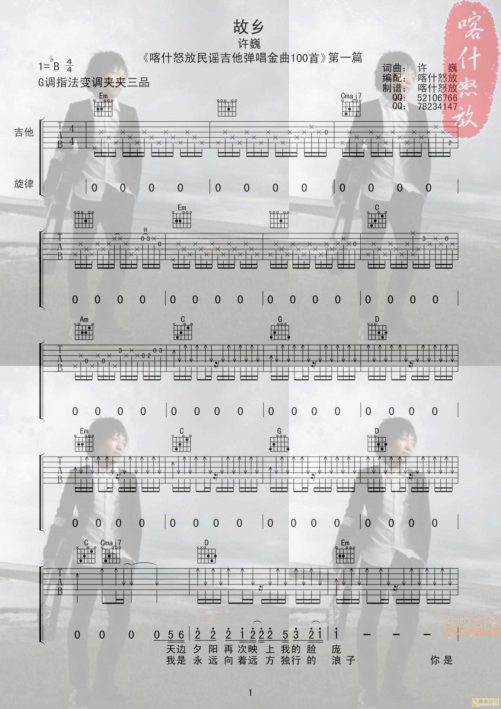 许巍 故乡 喀什怒放吉他谱 - 许巍 - 吉他弹唱谱