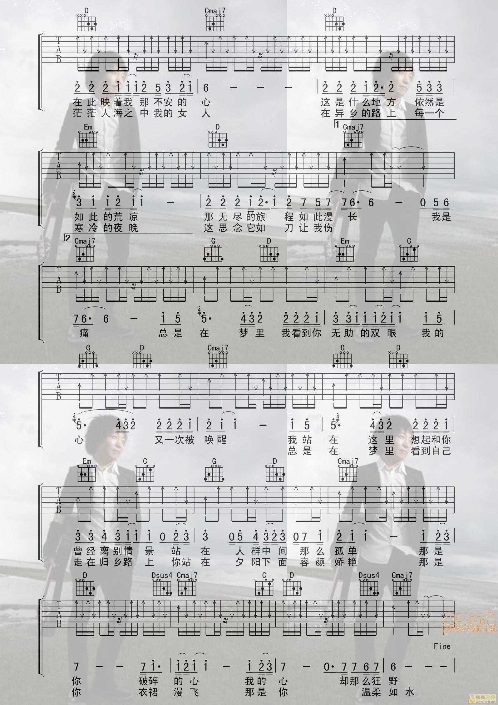 当前位置:琴谱网>吉他弹唱>许巍 故乡 喀什怒放