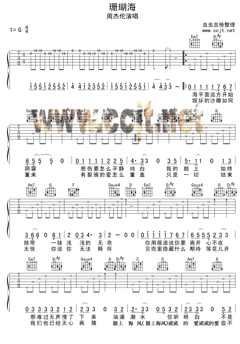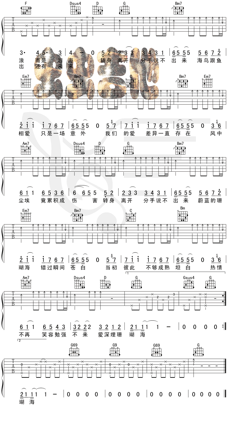 珊瑚海吉他谱 - 吉他弹唱谱