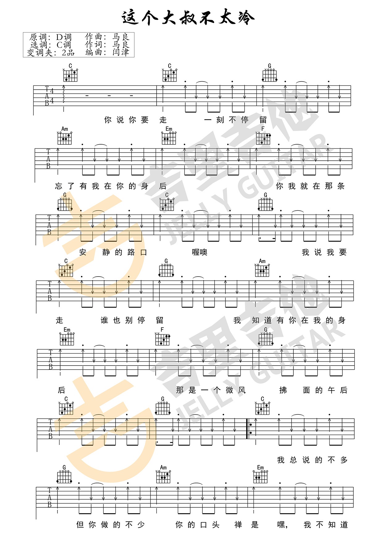 这个冬天不太冷 花粥/马良 C调六线吉他谱 - 这个冬天不太冷 - C调吉他弹唱谱