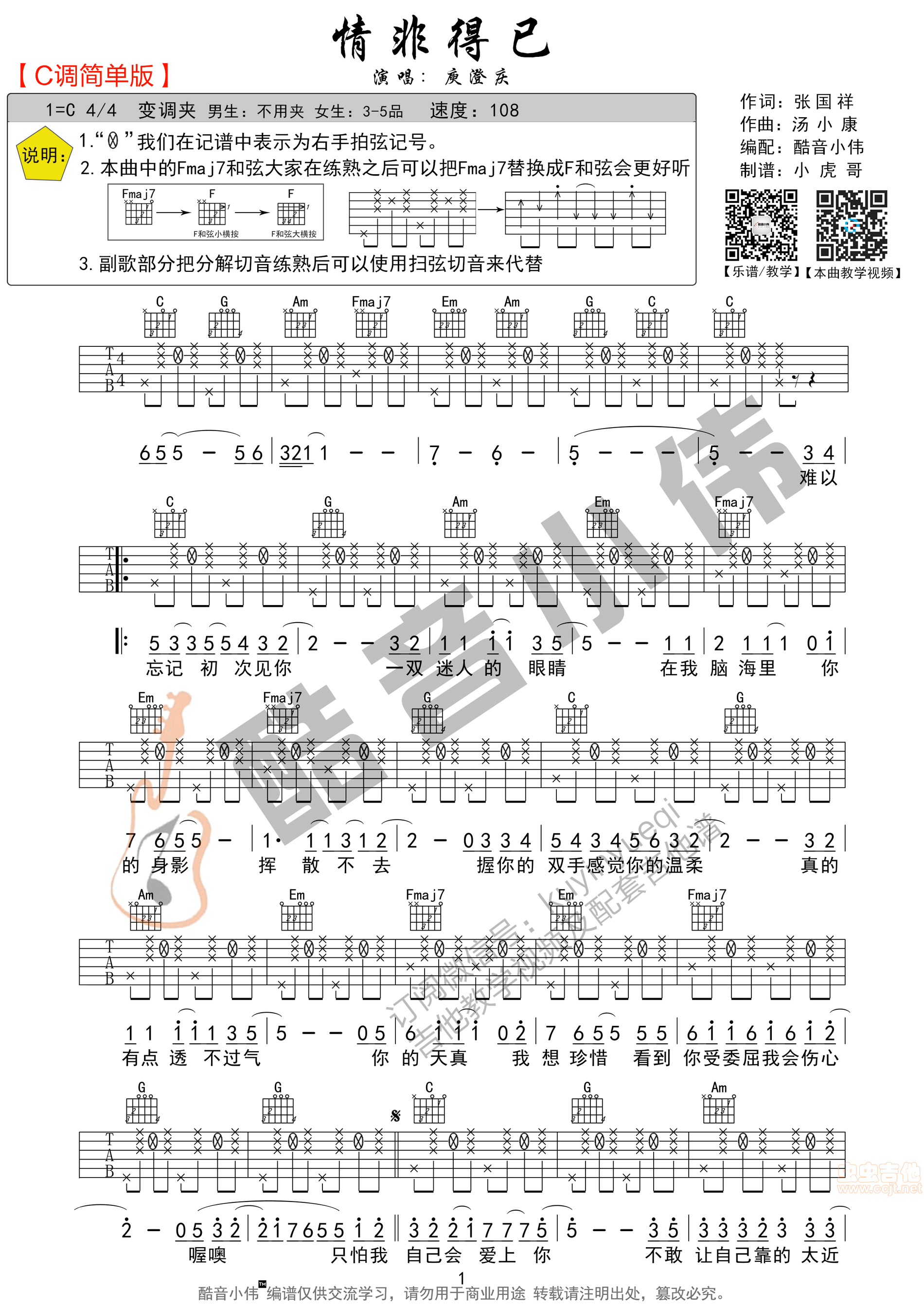 情非得已吉他谱 - C调吉他弹唱谱