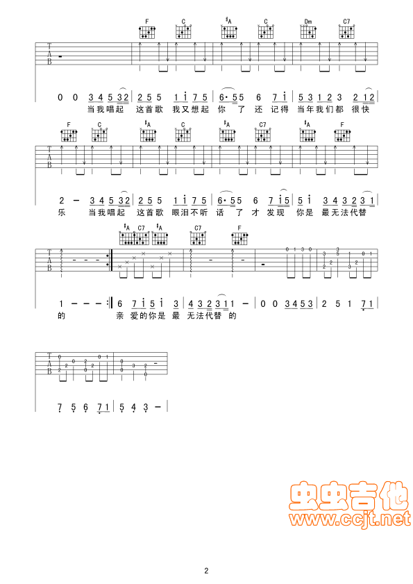 曲谱介绍: 《当我唱起这首歌(》吉他弹唱谱,共有2张高清图谱,免翻页排版设计。