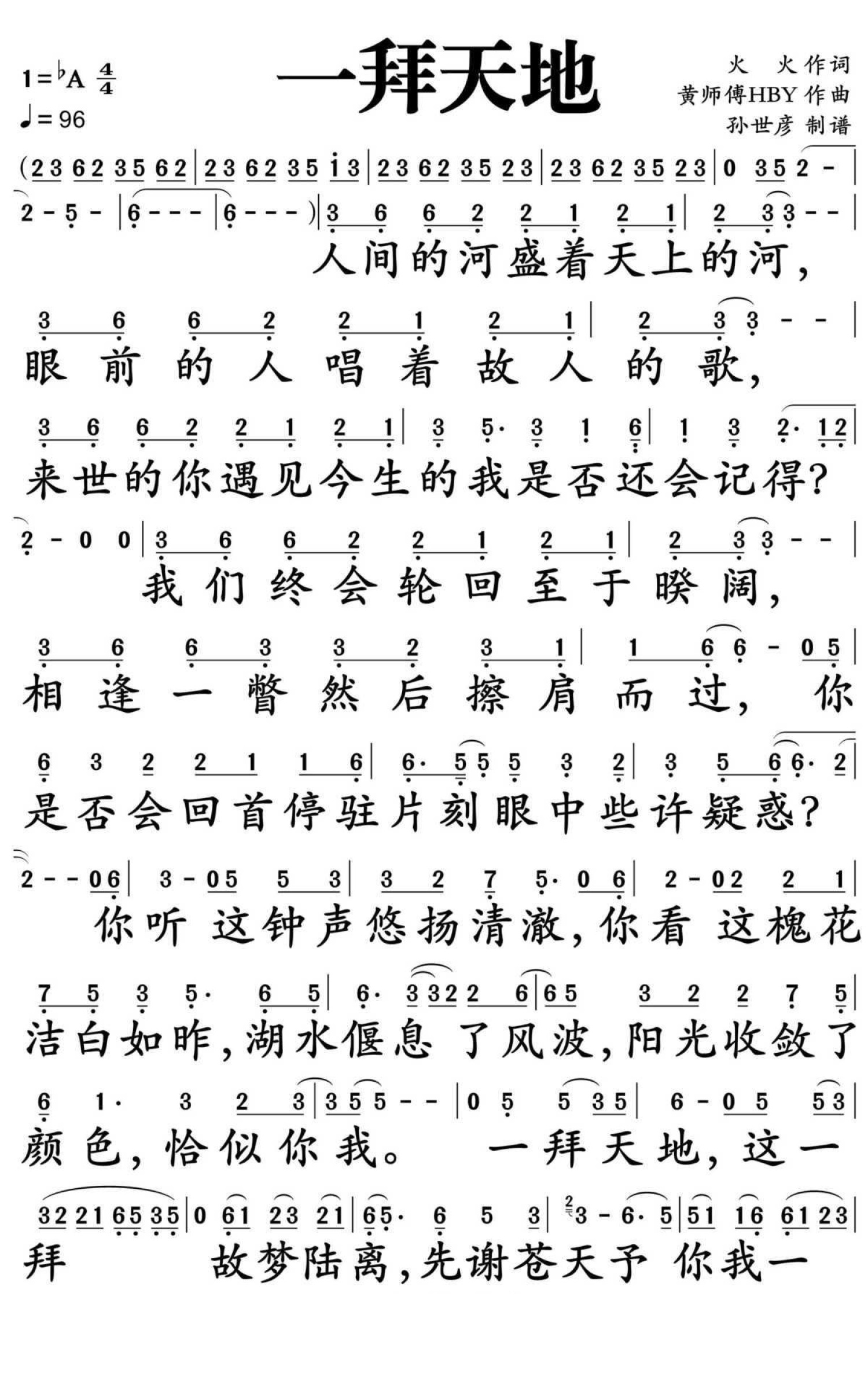 一拜天地简谱 - 不是Av的Ay君