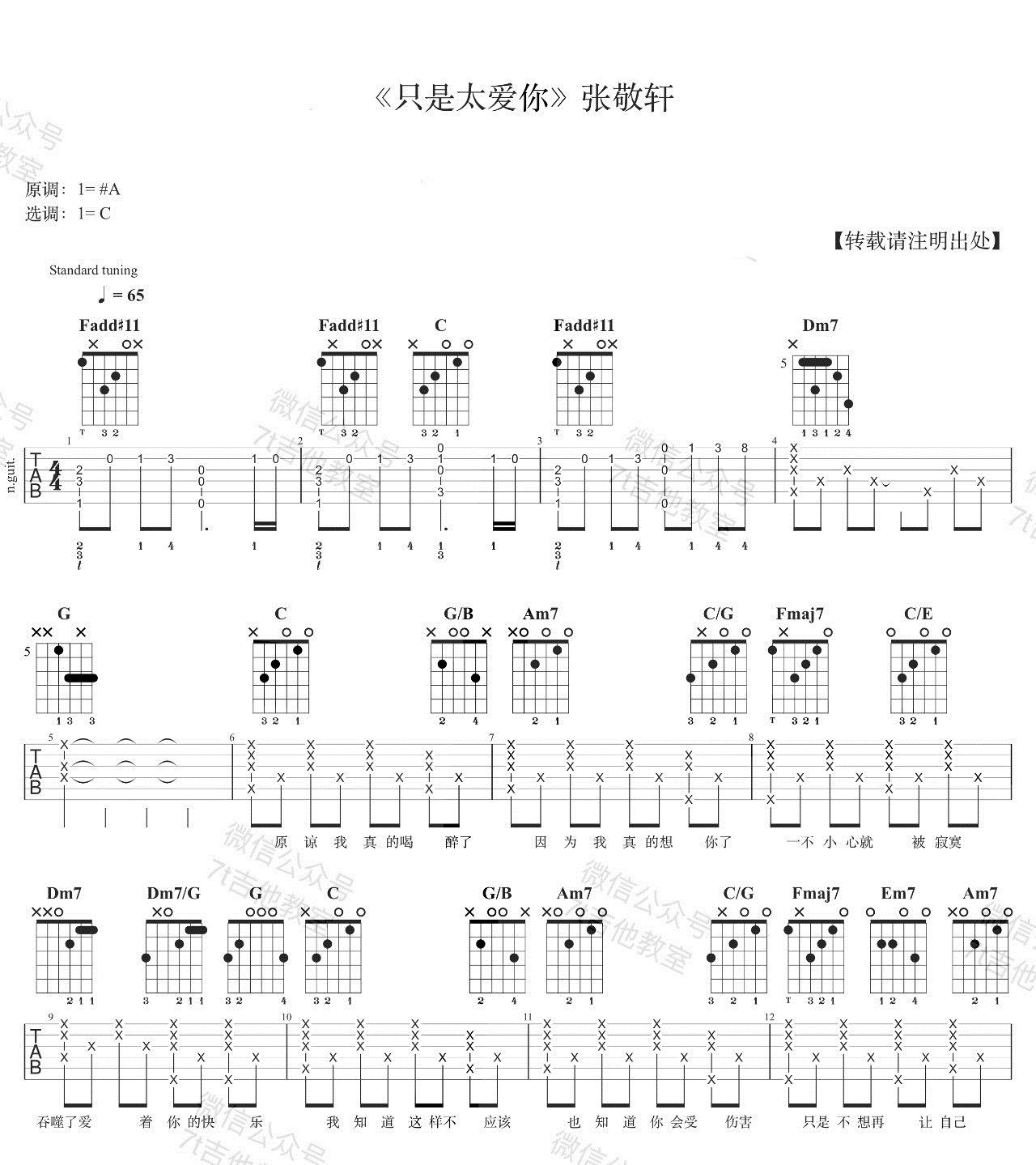 只是太爱你 张敬轩 图片吉他谱 - 只是太爱你 - 吉他弹唱谱