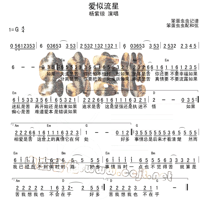 爱似流星 新流星蝴蝶剑电影主题曲 图片吉他谱 - 爱似流星 - 吉他弹唱谱