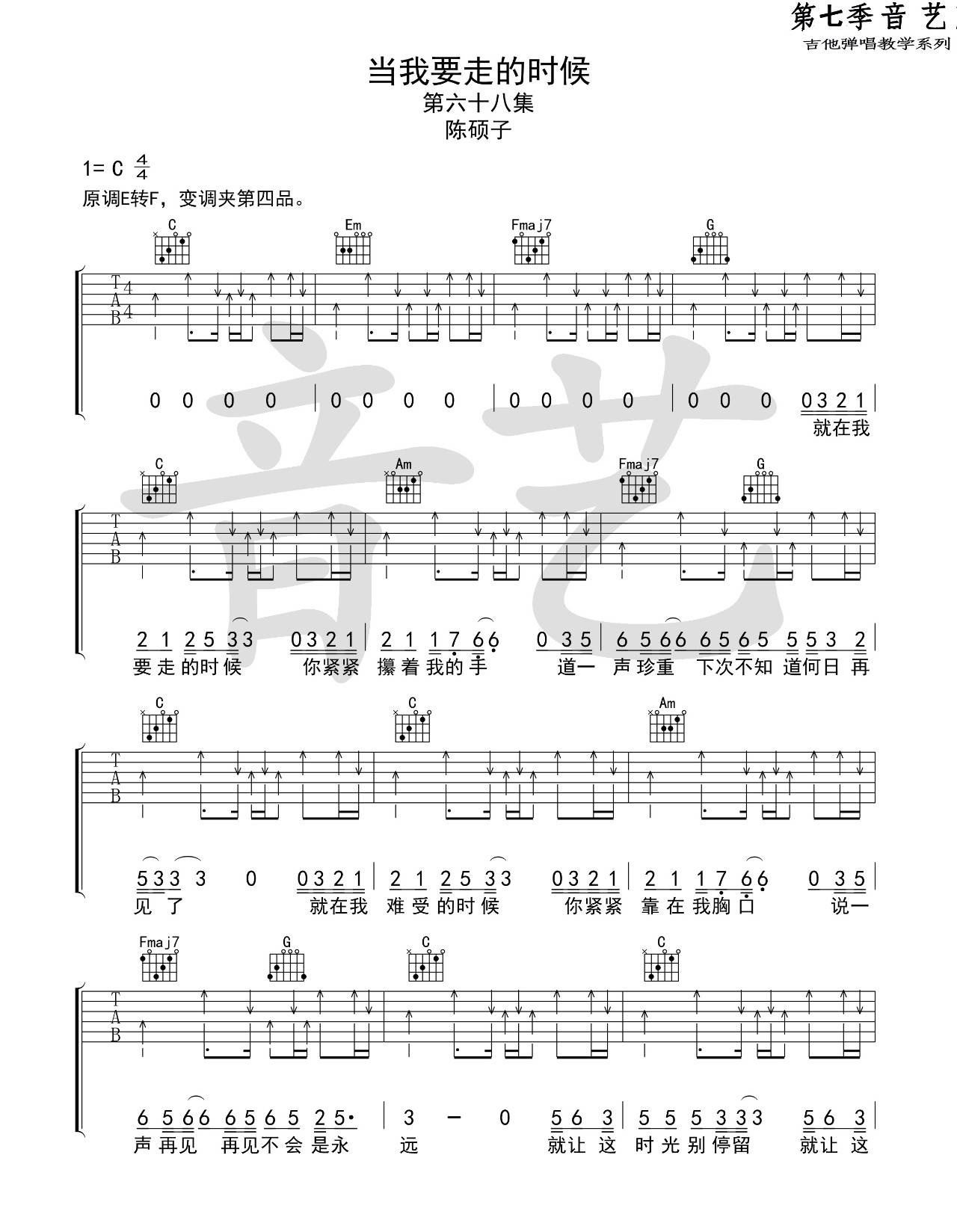 当我要走的时候 陈硕子 C调六线吉他谱 - 当我要走的时候 - C调吉他弹唱谱