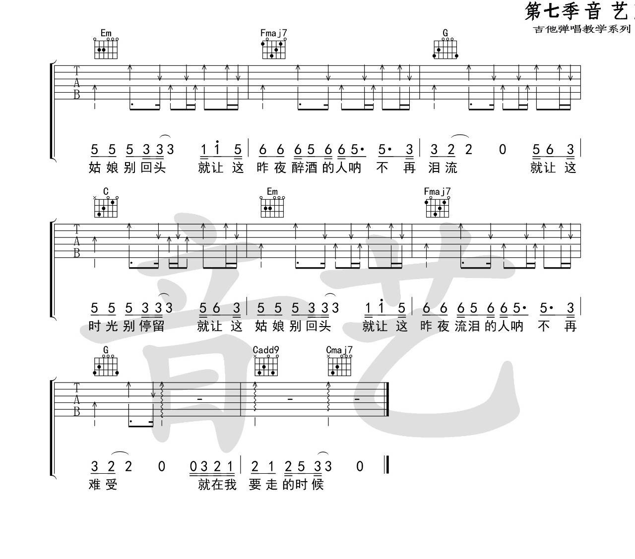 当前位置:琴谱网>吉他弹唱>当我要走的时候 陈硕子 C调六线