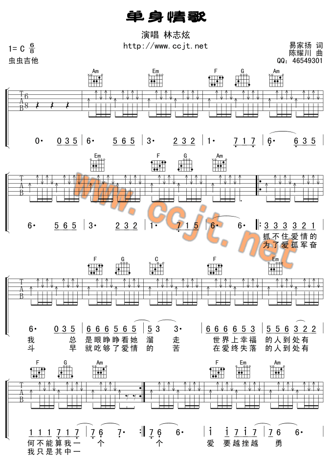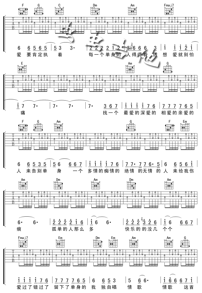 单身情歌吉他谱 - 吉他弹唱谱