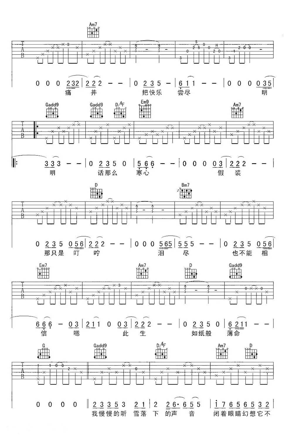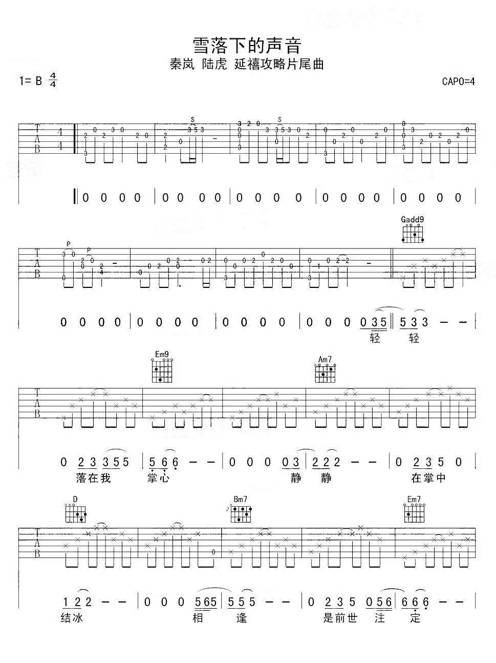 延禧攻略吉他谱 - 雪落下的声音 - B调吉他弹唱谱