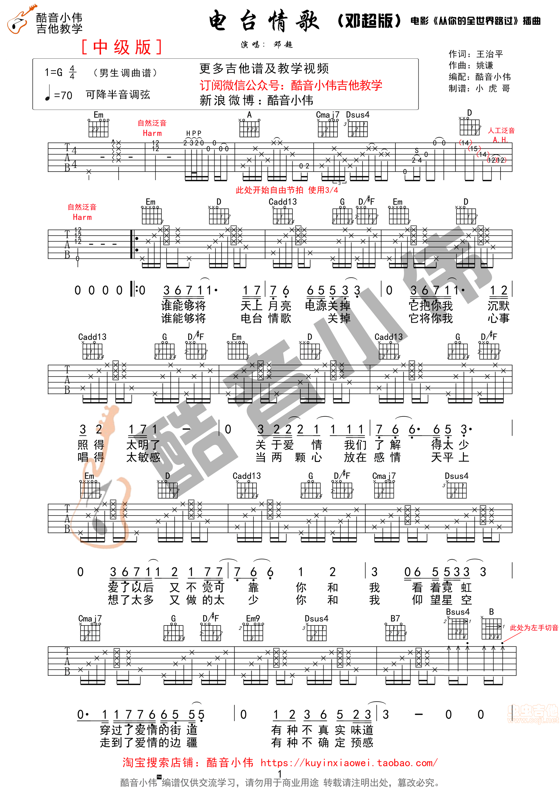 电台情歌吉他谱 - 吉他弹唱谱 - 原版