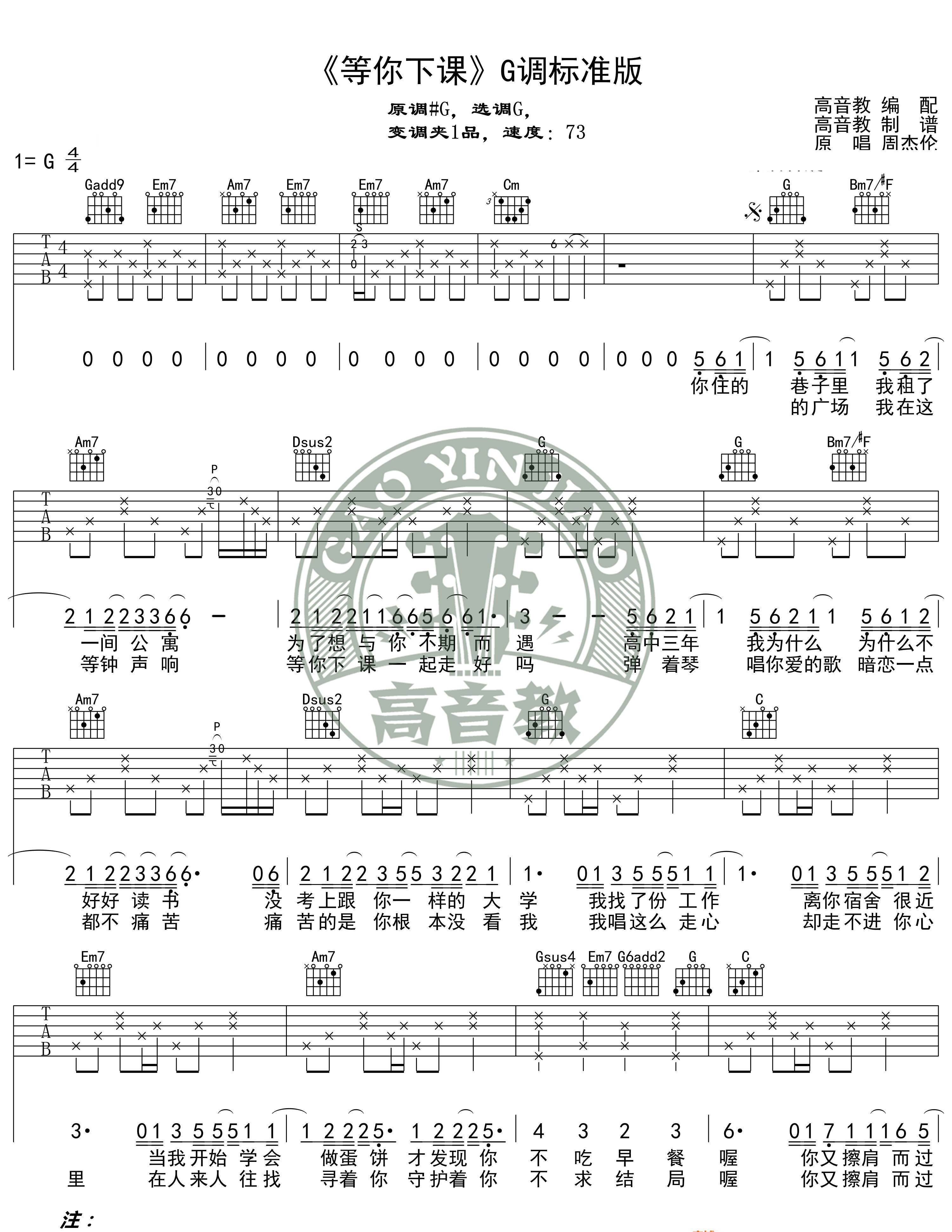 等你下课 周杰伦 G调图片吉他谱 - 等你下课 - G调吉他弹唱谱