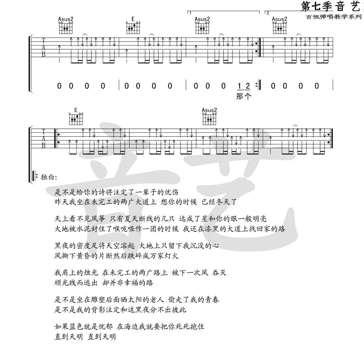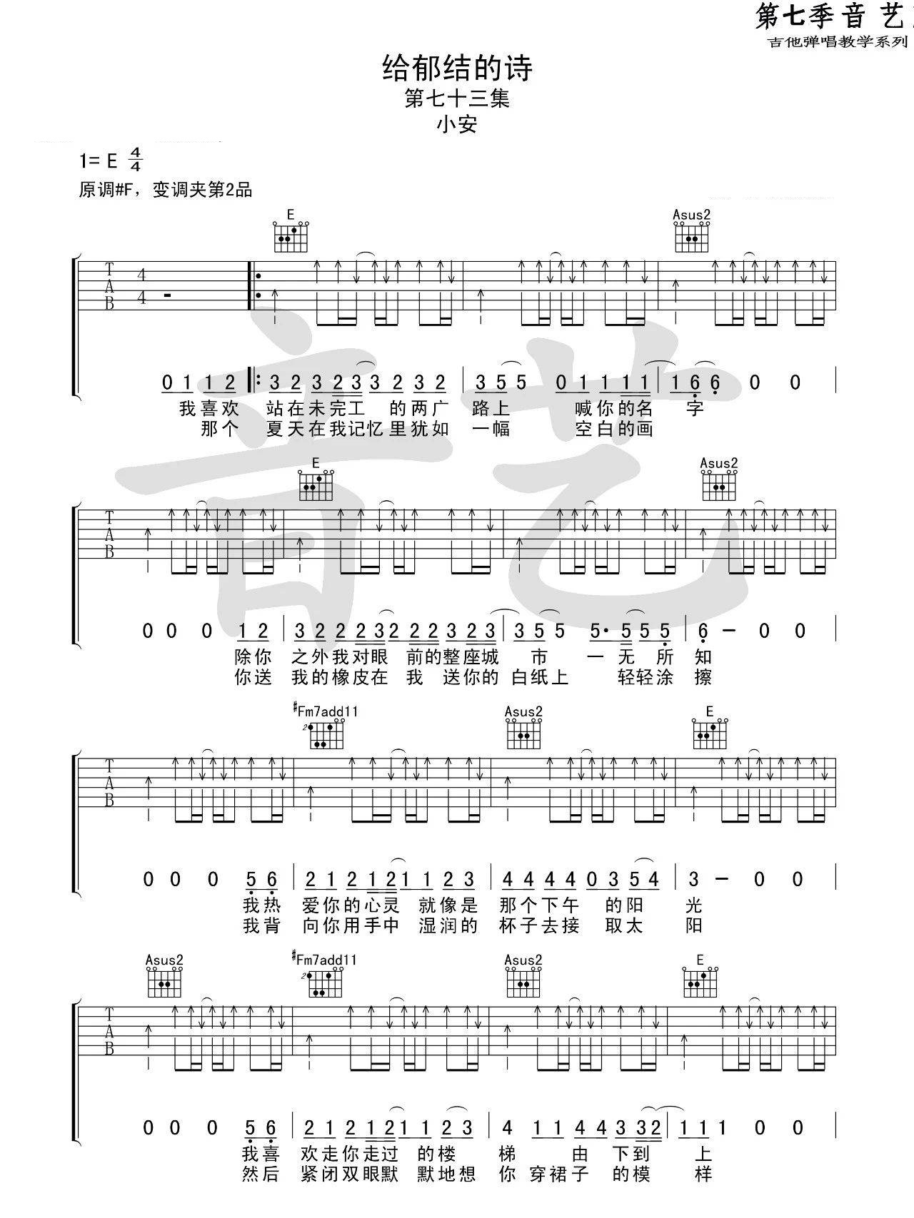 给郁结的诗 小安 E调六线吉他谱 - 给郁结的诗 - E调吉他弹唱谱