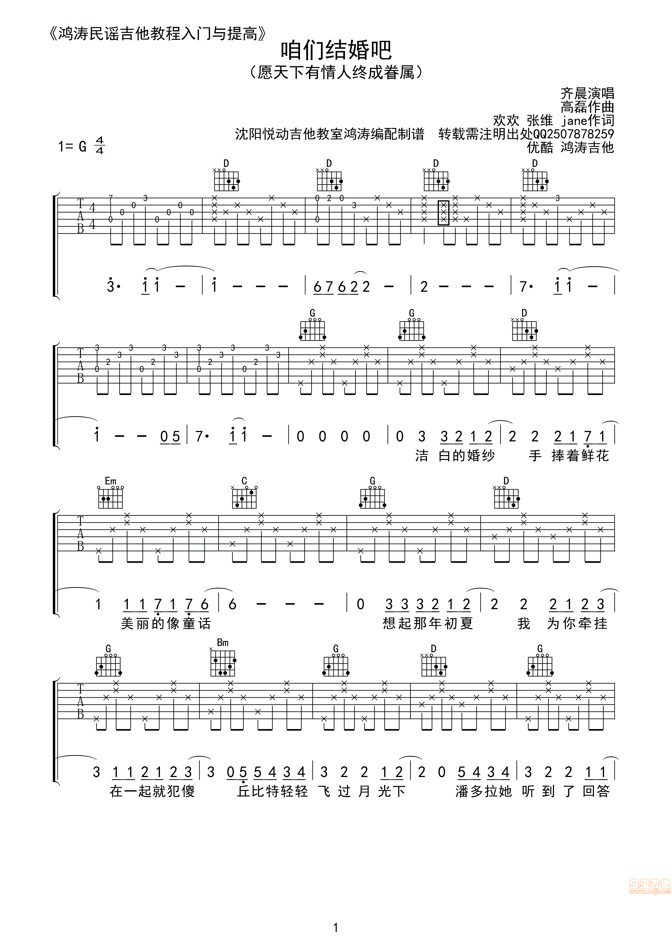 咱们结婚吧吉他谱 - 吉他弹唱谱