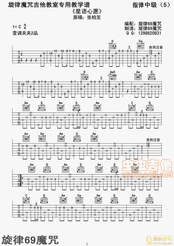 曲谱介绍: 《星语心愿》吉他独奏谱,采用C调指法编配,共有2张高清图谱,免翻页排版设计。