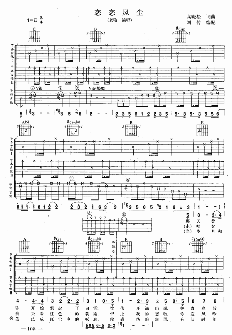 恋恋风尘吉他谱 - 吉他弹唱谱