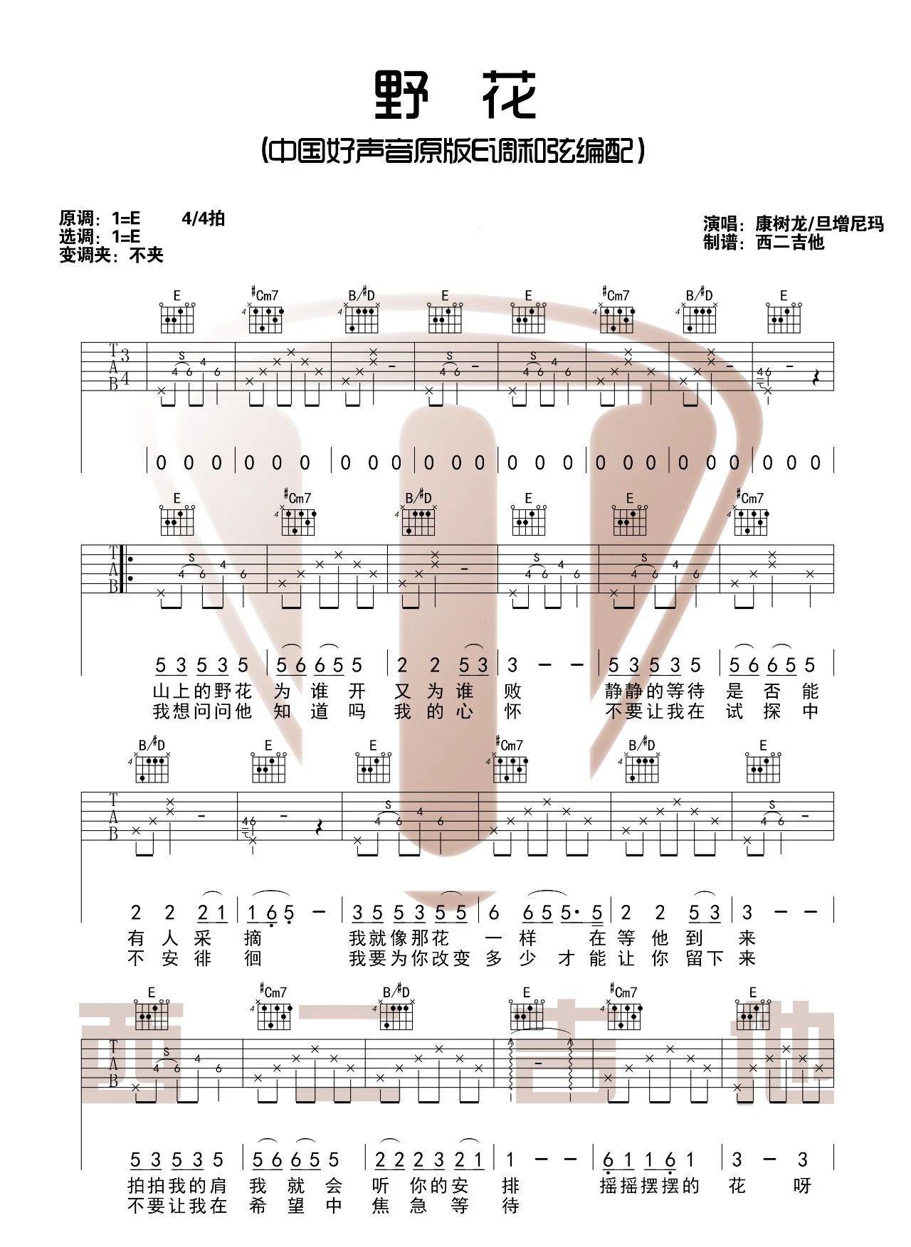 野花 康树龙/旦增尼玛 图片吉他谱 - 野花 - 吉他弹唱谱