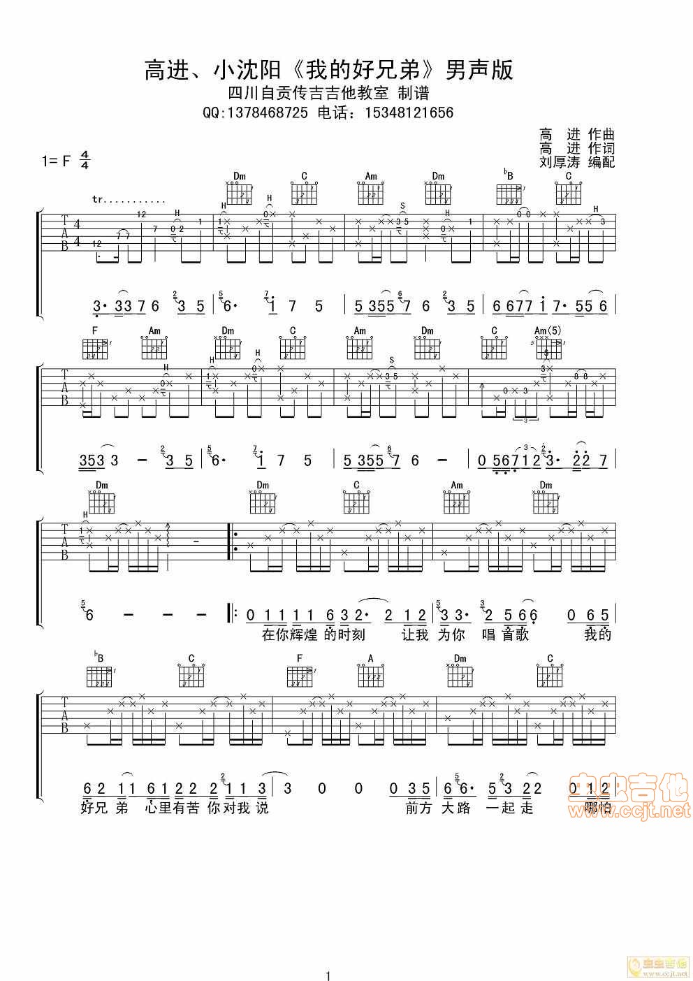 曲谱介绍: 高进、小沈阳《我的好兄弟》吉他弹唱谱,共有4张高清图谱。